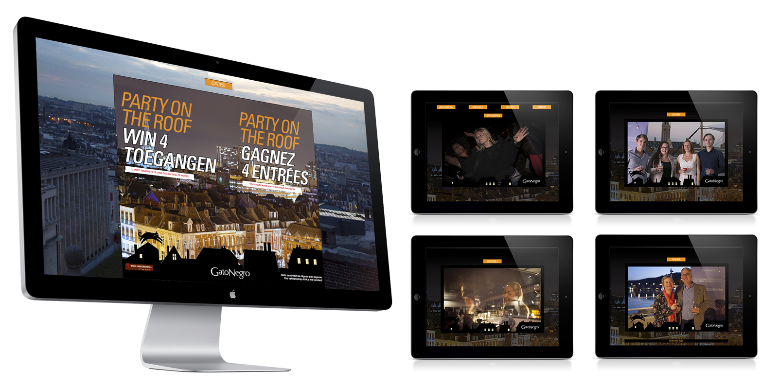 San Pedro, the Chilean winemaker, wants to promote the world famous brand "Gato Negro" by stimulating its brand awareness in Belgium. The Gato Negro iconic black cat becomes the leading concept of the strategy. A web contest is launched with the help of an instore promotional campaign. "Party on the roof" is the motto.