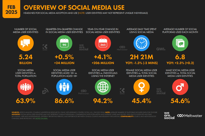 Chiffres-clés (Fév. 2025) © We Are Social - Meltwater